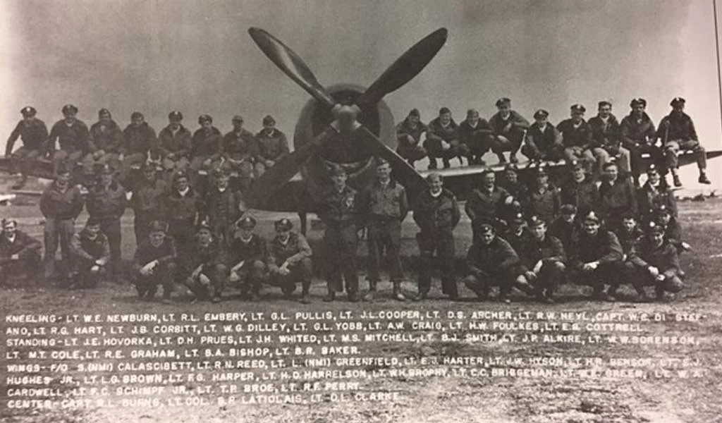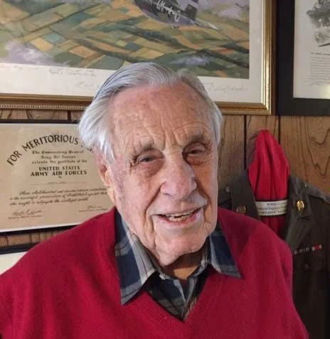 For Lucky, his war in the air would continue until February 1944. His next mission was five weeks later on November 19th to Gelsenkirchen. A week later, he returned to the skies over Bremen. His final mission was on February 13th, 1944. Flying as aircraft pilot onboard Alice from Dallas II with another pilot, Captain Bill DeSanders, who was on his final mission, the Group bombed V-1 sites at Livossart and Bois Rempre in France. Despite encountering flak and fighters even on this “low-risk” mission, Lucky and DeSanders returned to Thorpe Abbotts having now completed their 25 missions, and become the newest members of the so-called “Lucky Bastards Club” (an honorary organization for those who successfully completed their tours). Lucky was given a chance to command the 350th Squadron, but declined, as he would have had to fly additional missions. Now a Captain, Lucky returned to the US and was assigned to a training role with the 3rd Army Air Force. First assigned as an instrument instructor in Texas, Lucky was later reassigned to McDill Field, where he oversaw a combat crew inspection program to determine if new crews were ready for combat. When the war ended, Lucky initially stayed in the Arm Air Force and its successor, the US Air Force. After resigning his comission in 1947, Lucky used his GI Bill to return to college and complete his degree. Lucky became a commercial real estate developer, developing shopping centers. Today, as one of the last remaining pilots of the 100th Bomb Group, Lucky frequently gives talks around the world about his experiences during World War II. Notably, he was repeatedly interviewed by the production team of Masters of the Air. He resides in Dallas, Texas.